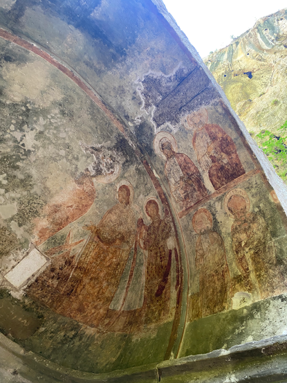 Aşağıda sizi Meryem Ana Kilisesi karşılıyor. Daha önce Helenistik dönemde burası Zeus tapınağı olarak da kullanılmış. Merdivenli yolun da bu dönemden kaldığı düşünülüyor. Kilise tarih literatürüne 1905’te Gertrude Bell tarafından geçmiştir. Küçük bir kilise olmasına rağmen ortamın ve yapının güzelliği insanı büyülüyor. 1850’li yıllarda yapı camii olarak da kullanılmıştır. Kilisenin giriş kapısının üzerinde 4 satırlık bir kitabe bulunuyor. Bu kitabeden kilisenin 5.yy. da Aziz Paulus adına dindar birisi tarafından Meryem Ana’ya ithafen yapıldığı belirtilmiş. Apsis içinde Hz. İsa ve 12 havarisinin resmedildiği freskler bulunuyor.